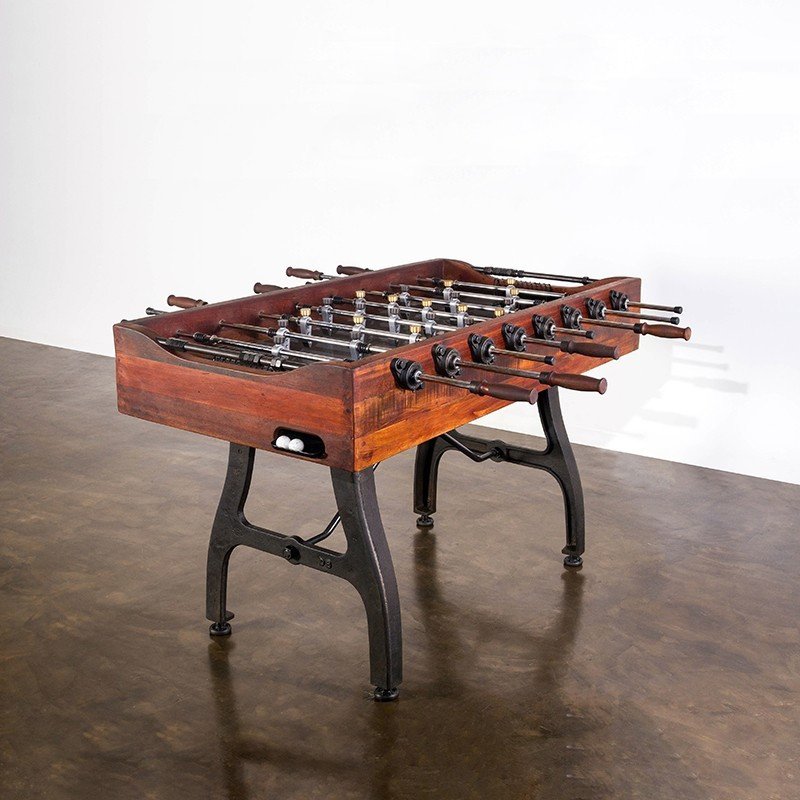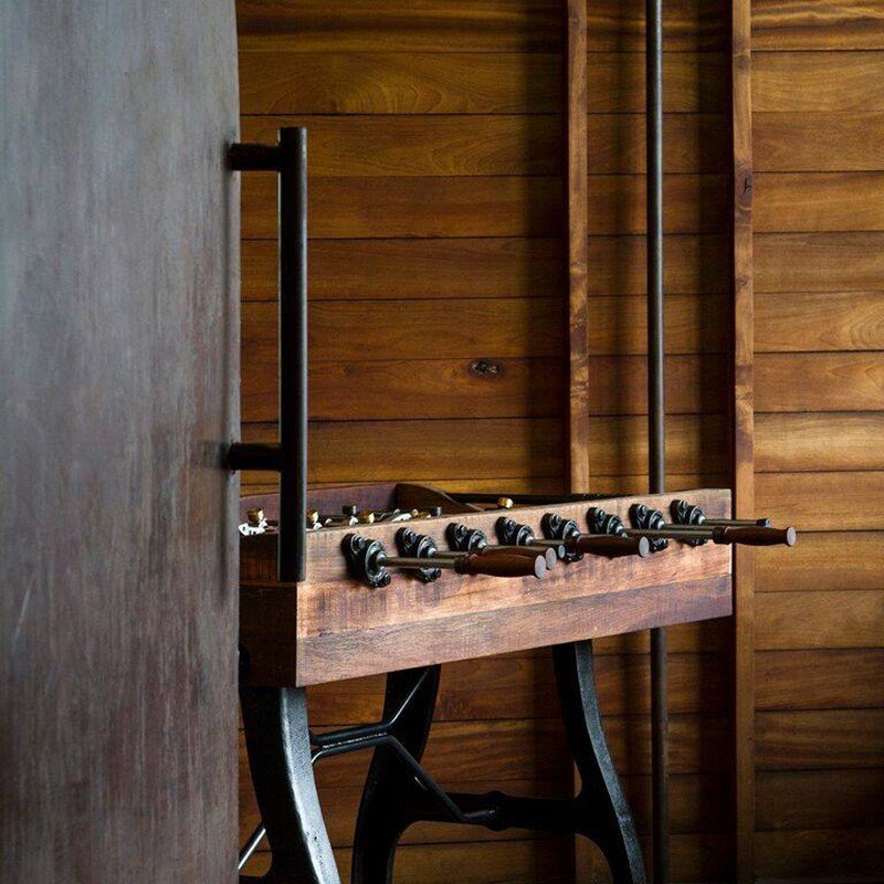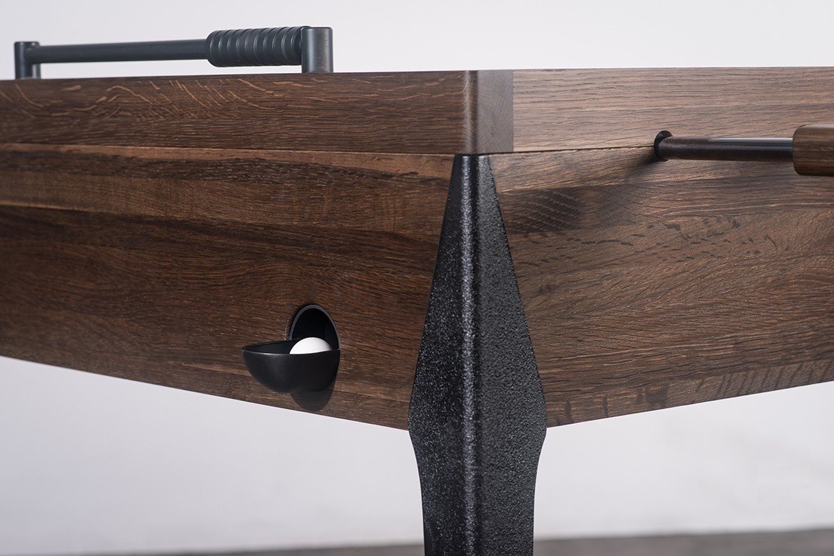 以火山噴發後,冷凝形成的稀有玄武岩作成手足球檯面,搭配色澤成熟的煙燻橡木與鑄鐵,創造出Club手足球檯。
