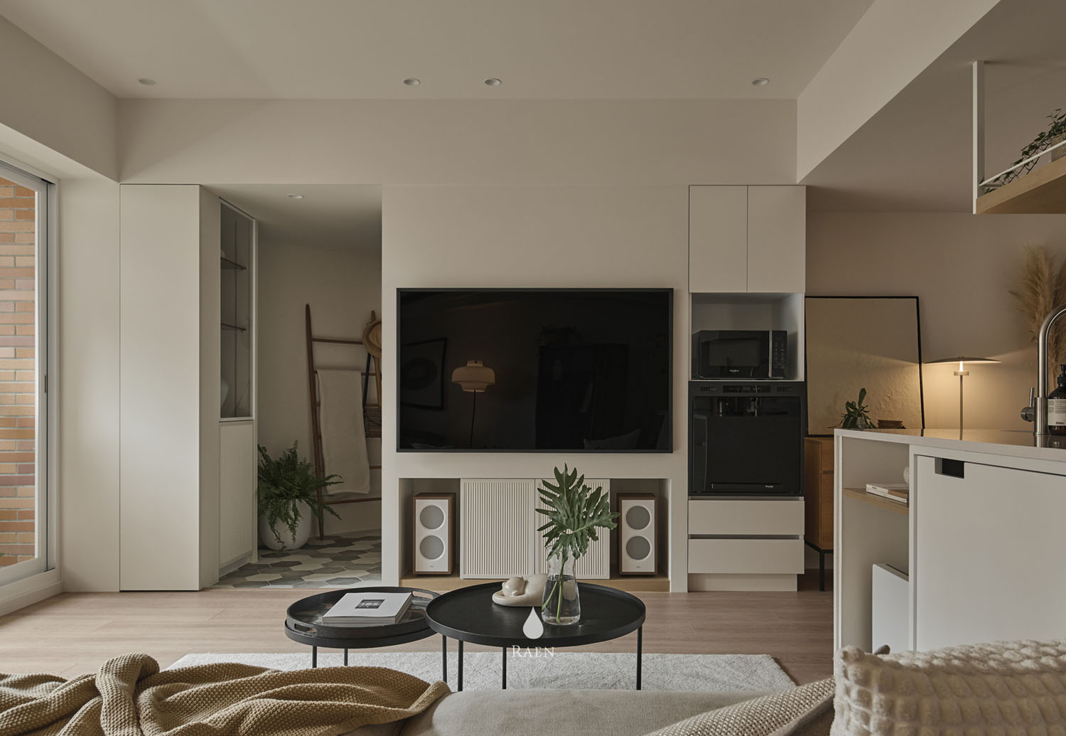 整體基地色調選用屋主喜愛的奶茶色,全室搭配Mountain Living北歐系列家具,營造出自然且柔和的氛圍~