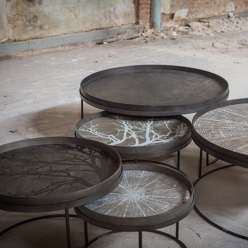 Notre Monde 的作品細緻並帶有輕奢感,托盤不僅能作為置物盤,也可以置掛在牆上,或是搭配茶几框架結合為實用的邊桌。除此之外,Notre Monde 不斷發展出復古精美的桌几、掛畫、鏡子和沙發等傢俱,兼顧了空間美學與功能性。