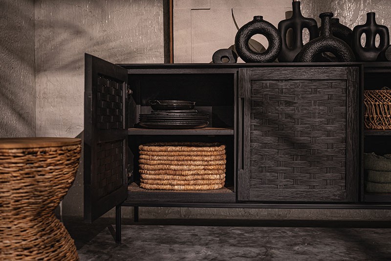 此系列櫃類門片為柚木,柚木偏硬,編織過程中出現些微裂縫屬於正常現象,不影響使用